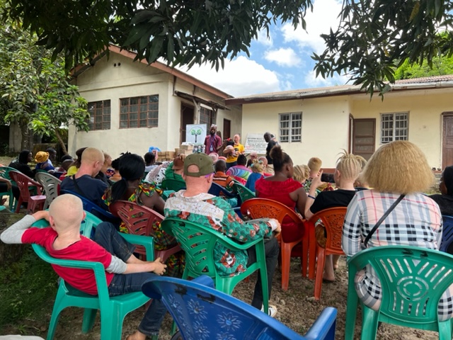 In November MASL trustees undertook a project visit to Sierra Leone, visiting Bo, Port Loko, Freetown and Njala. In Bo we attended one of the project’s ‘Living Safely With Albinism’ forums where SLAPWA distributes Altruist Sunscreen and donated protective items such as hats and sunglasses. These are rare opportunities for the community to come together and are essential for reducing isolation and gaining practical and emotional support from peers and from the Association.
